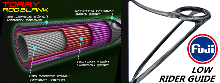 Yapılabilecek en pahalı tercih. Son derece hafif, Mükemmel atım performansı sunan yüksek ısı ve darbe dayanımına sahip, Balıkçılığın doğasını değiştiren Nano teknoloji ile entegre edilmiş devrim niteliğinde Karbon fiber/Reçine matrisi.