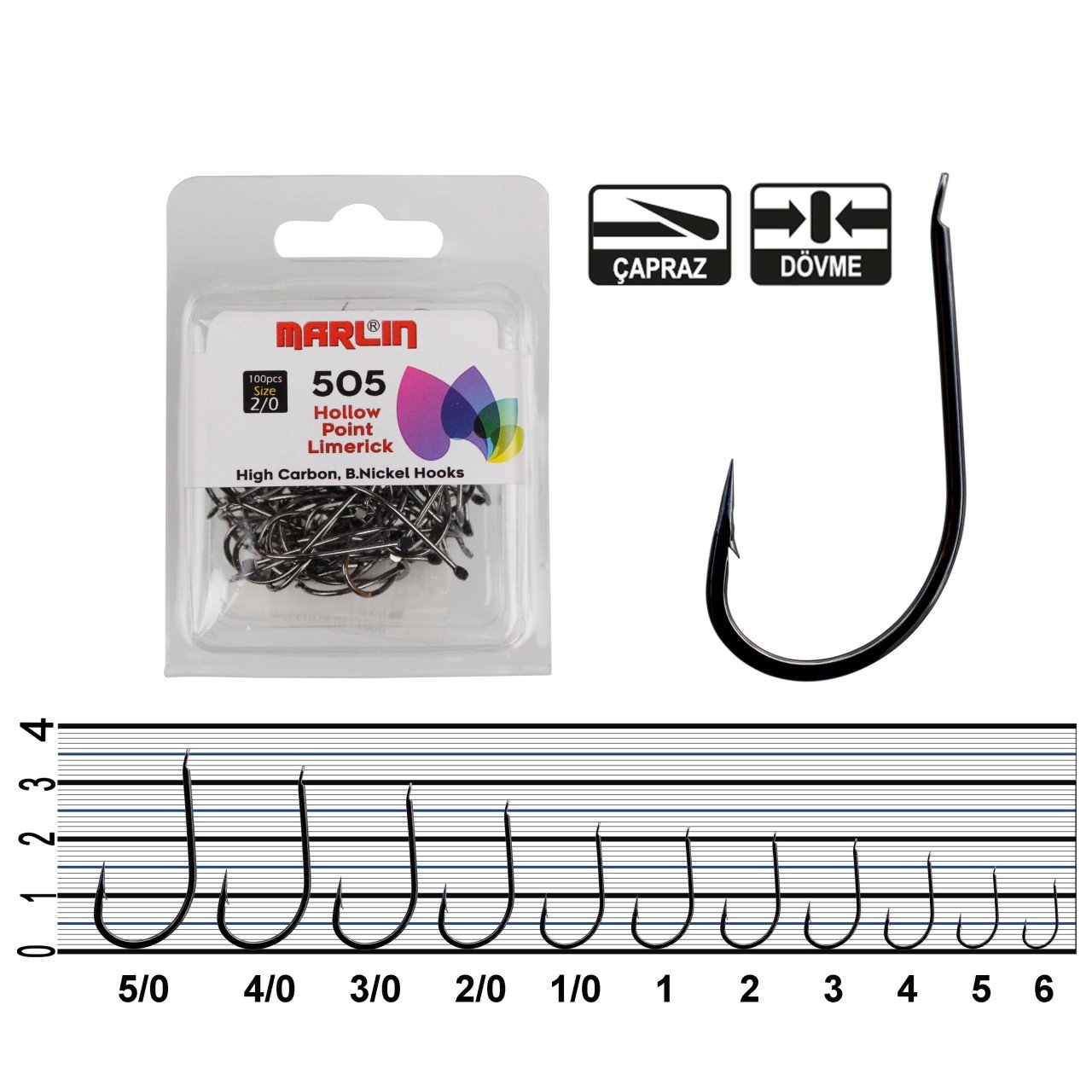 Marlin 505 Bn iğneleri kalın yapısı ve papağan gagası sivri ucu sayesinde Çipura ve Mercan gibi damaklı balıklara karşı son derece dayanıklıdır.