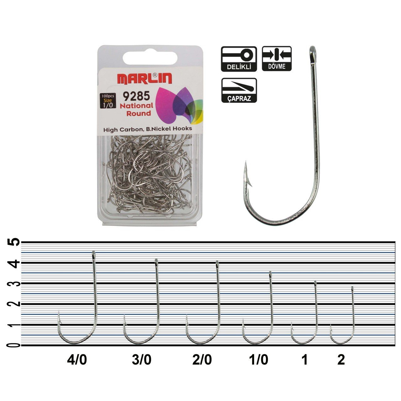 Marlin 9285 National Round serisi iğneleri özellikle tuzlu suda iğne numaralarına göre Sinarit, Orkinos, Palamut, Lüfer, Sarıkanat, Çinekop, Karagöz ve Tatlı suda ise Sudak, Tatlı su levreği gibi balıklar için tasarlanmıştır.